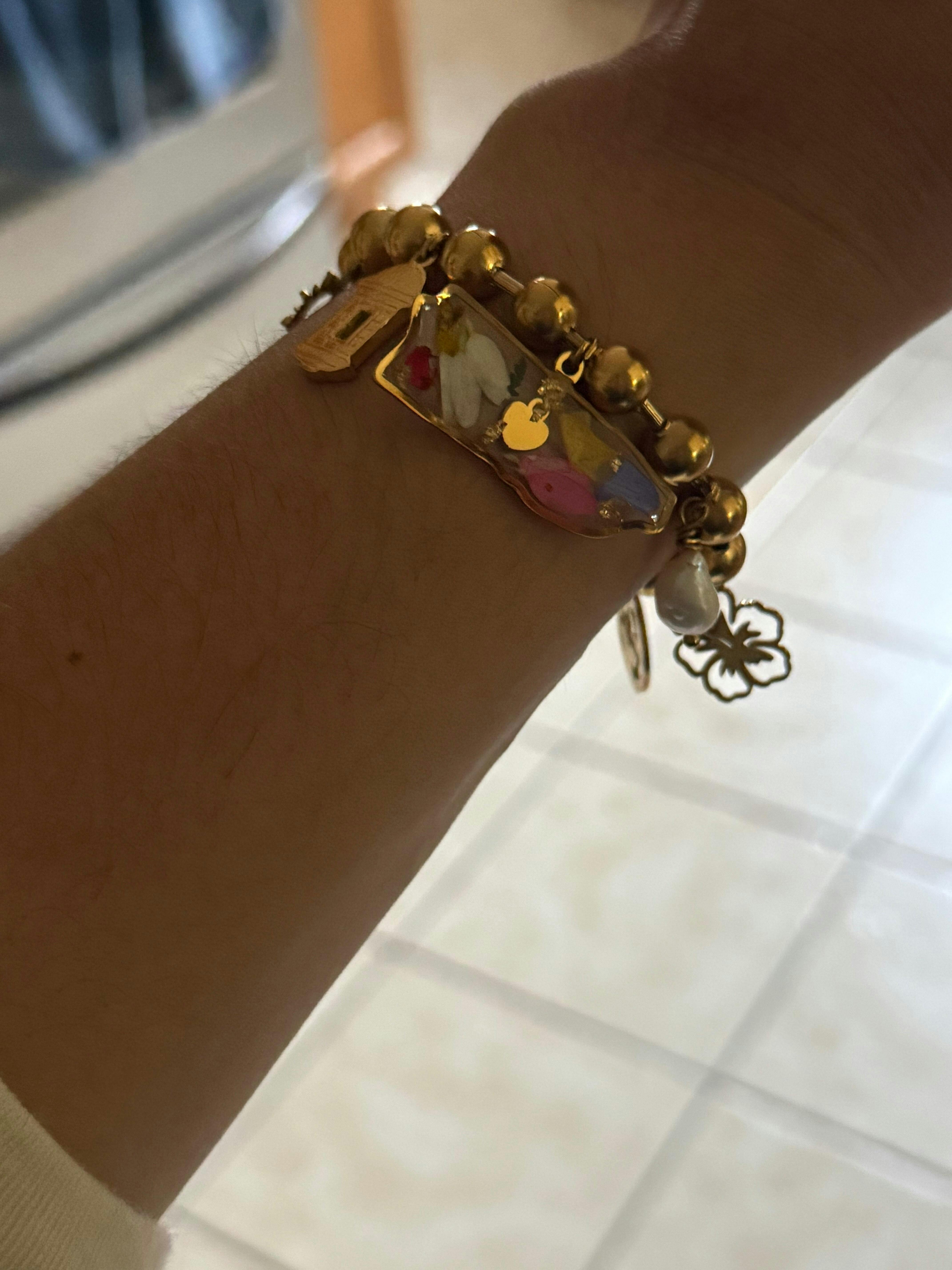 Nostalgia 100x35 Brazalete con mapa de Puerto Rico y Flores en Resina